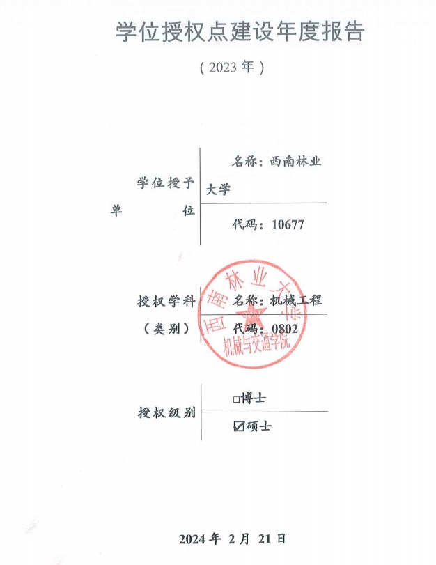 上一条:西南林业大学机械工程学位授权点建设2024年年度报告